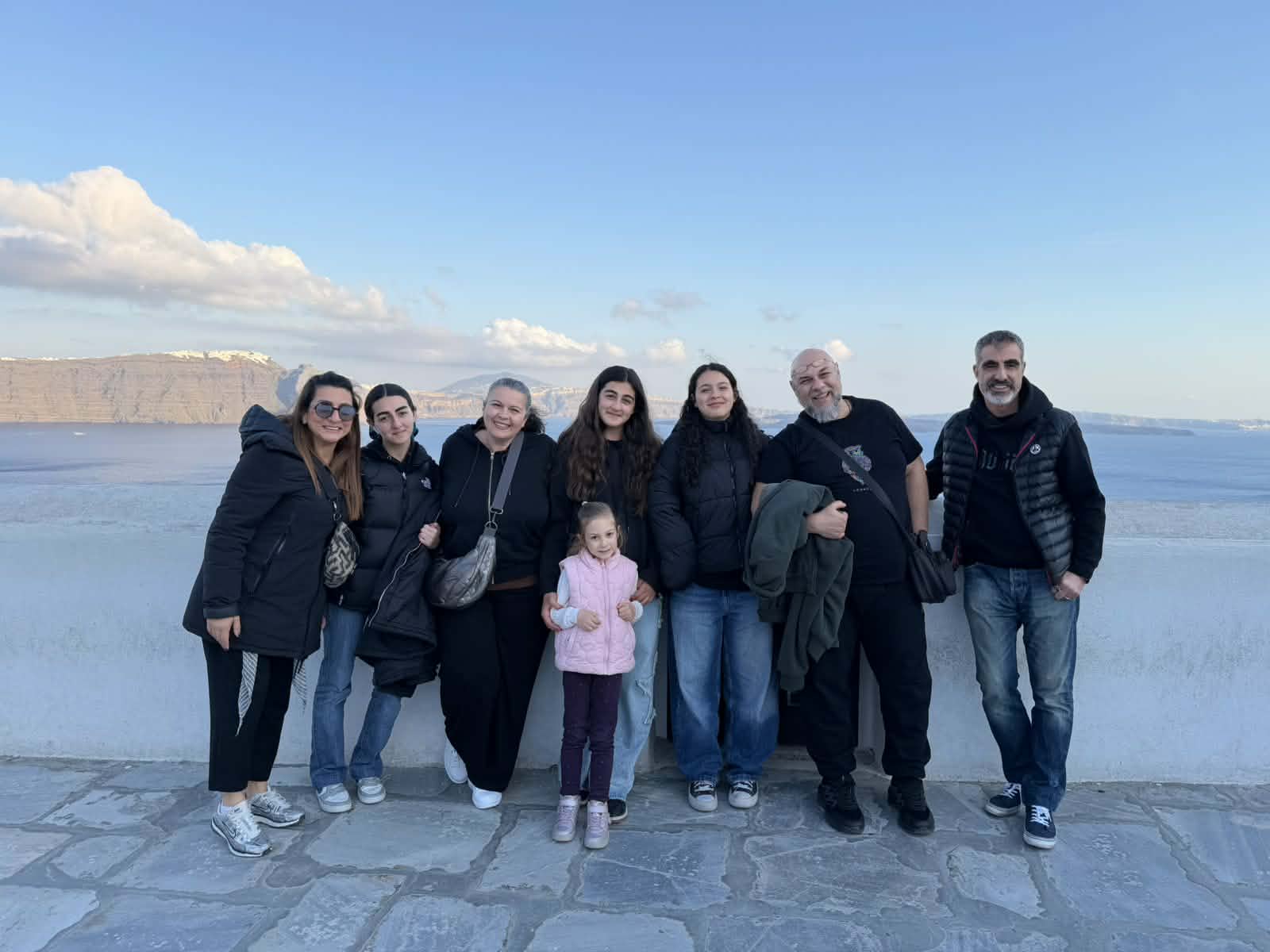 Και οι ημέρες τους στο νησί με τα -παγκοσμίως- μοναδικά χαρακτηριστικά κυλούν ακόμα πιο όμορφα αφού μιλούν για βόλεϊ και Πορφύρα με την οικογένεια της έτερης αθλήτριας μας των Παγκορασίδων Γ Κωνσταντίνας Γονιδάκη, με θέα την καλντέρα.